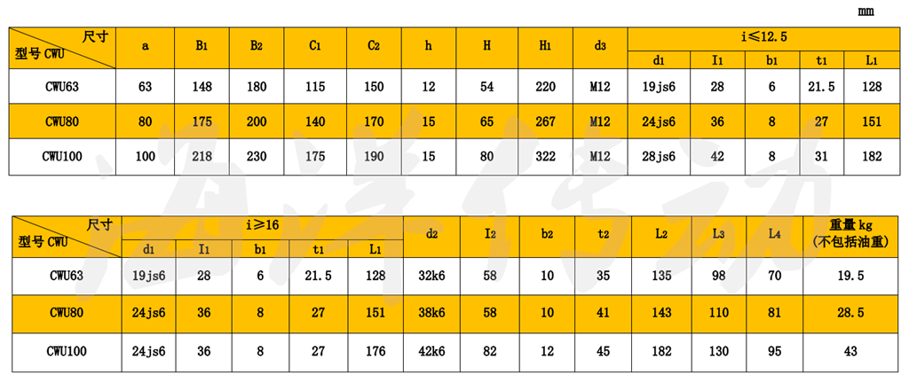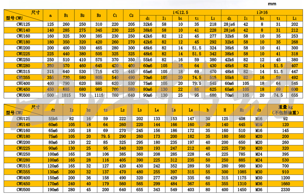 內(nèi)容: CWU- 蝸桿在蝸輪之下的圓弧圓柱蝸桿減速機